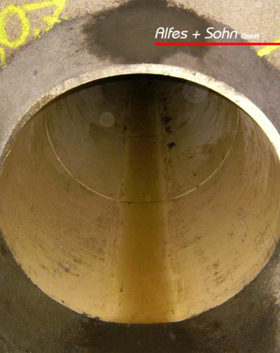 Auf der Baustelle stellte sich dann erstmals heraus, wie stark das 1200er Alt-Rohr tatsächlich beschädigt war. Neben einer starken Deformation des Rohres, konnte die Kameratechnik ebenso eine starke Rissbildung erfassen. Die Lebensdauer dieses Kanals war bereits weit über dem Limit ausgereizt worden, so konnte die Standsicherheit nicht mehr gewährleistet werden.