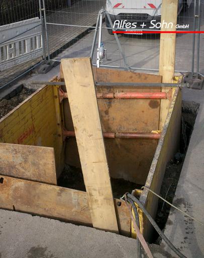 In der Praxis ließ sich dieses Vorhaben sehr gut umsetzen und so war es uns möglich, trotz der schmalen Baugrube, den stark geschädigten Alt-Kanal zu erneuern.